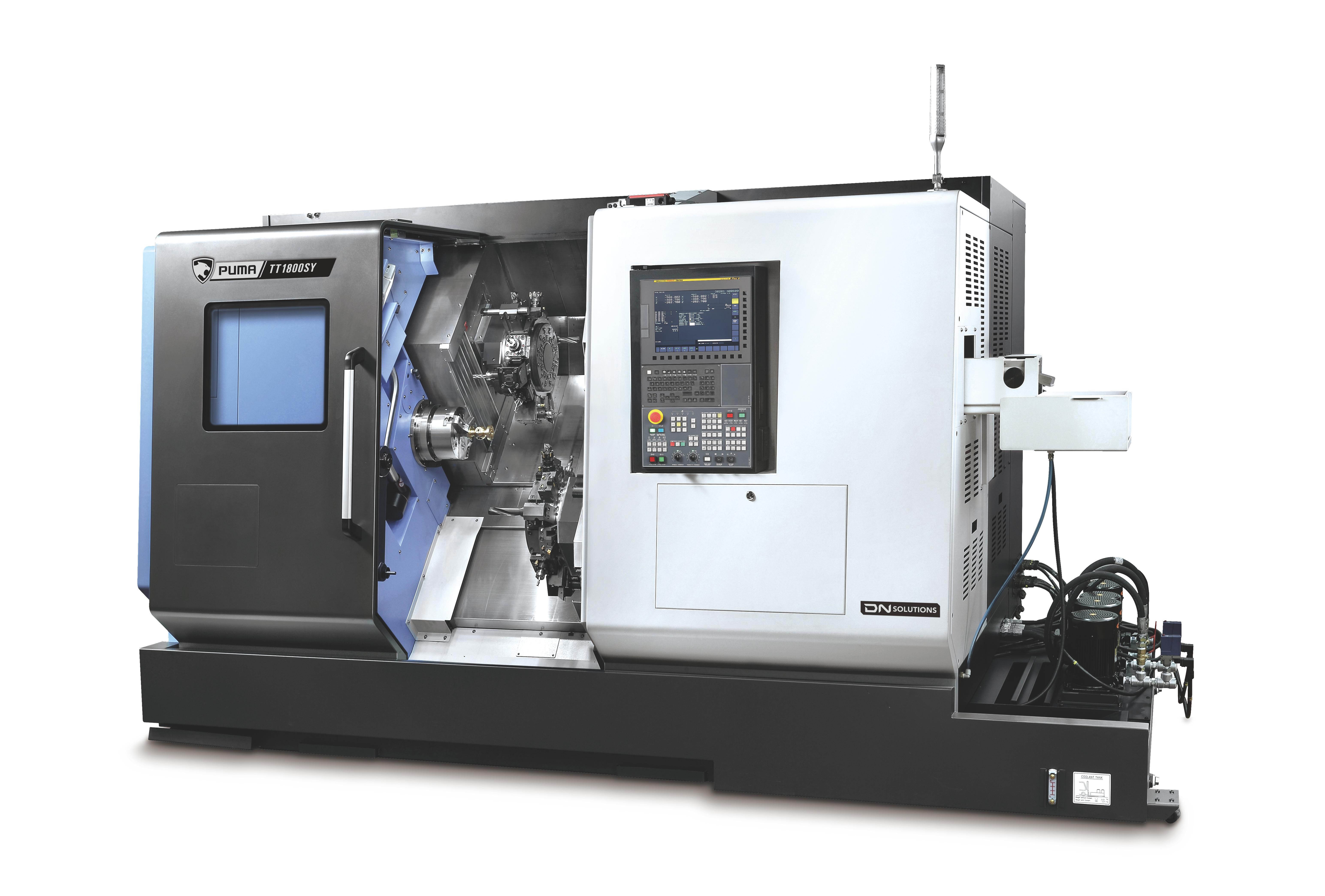 The PUMA TT1300, TT1800, TT2100, and TT2500 series are high-productivity horizontal turning centers with bar capacities ranging from 42mm to 81mm. These machines are equipped with twin opposed spindles and upper/lower turrets, featuring Y-axis capabilities for simultaneous two-face machining. Both spindles have equal power and capacity, allowing independent operation and automatic workpiece ejection, significantly enhancing productivity. Favored globally, the PUMA TT series is renowned for its best-in-class performance and reliability, making it one of DN Solutions' top-selling products. |