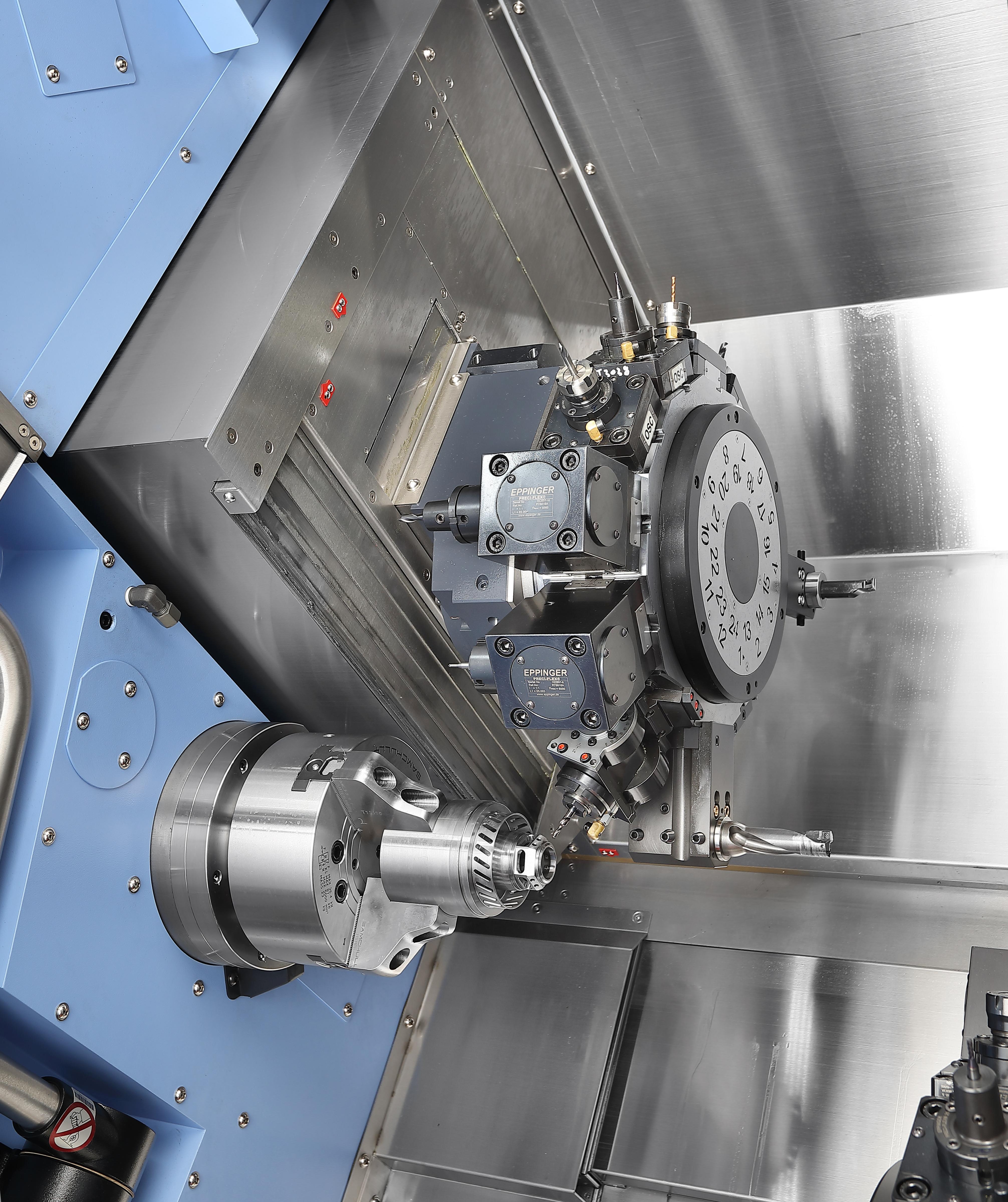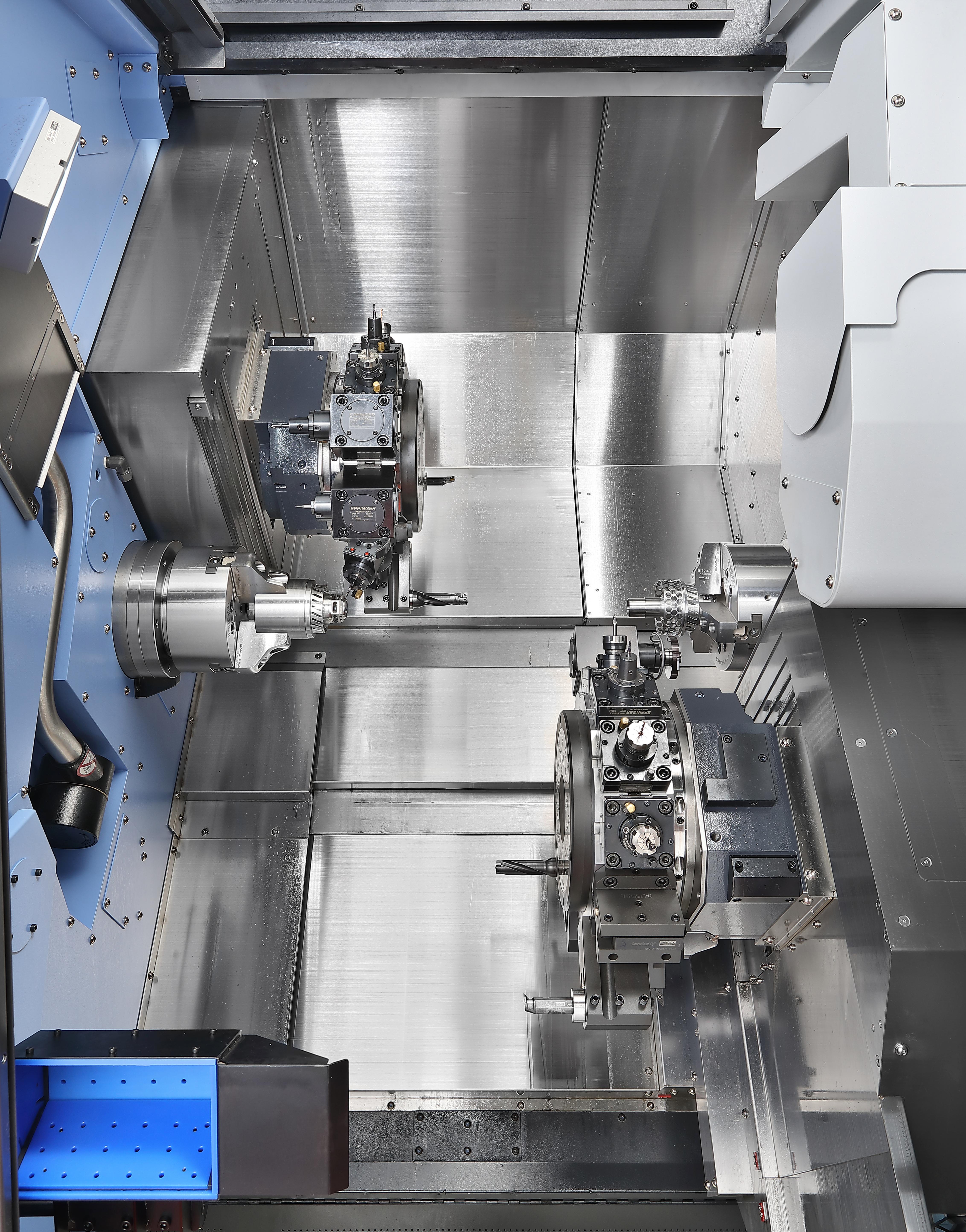 - Dual Spindle Efficiency: Twin opposed spindles with equal power allow simultaneous machining on two faces, significantly increasing productivity.
